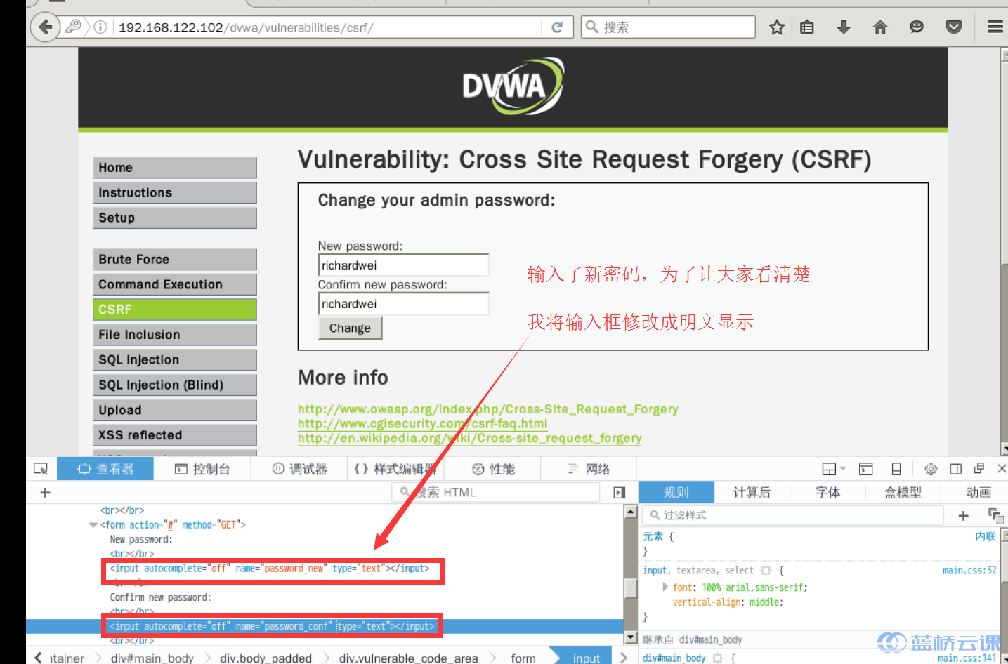 Double-click the file to open it in Firefox. Once loaded successfully, return to the DVWA platform. After clicking Logout and attempting to log in again, you’ll notice the password has been changed, and login is no longer possible.