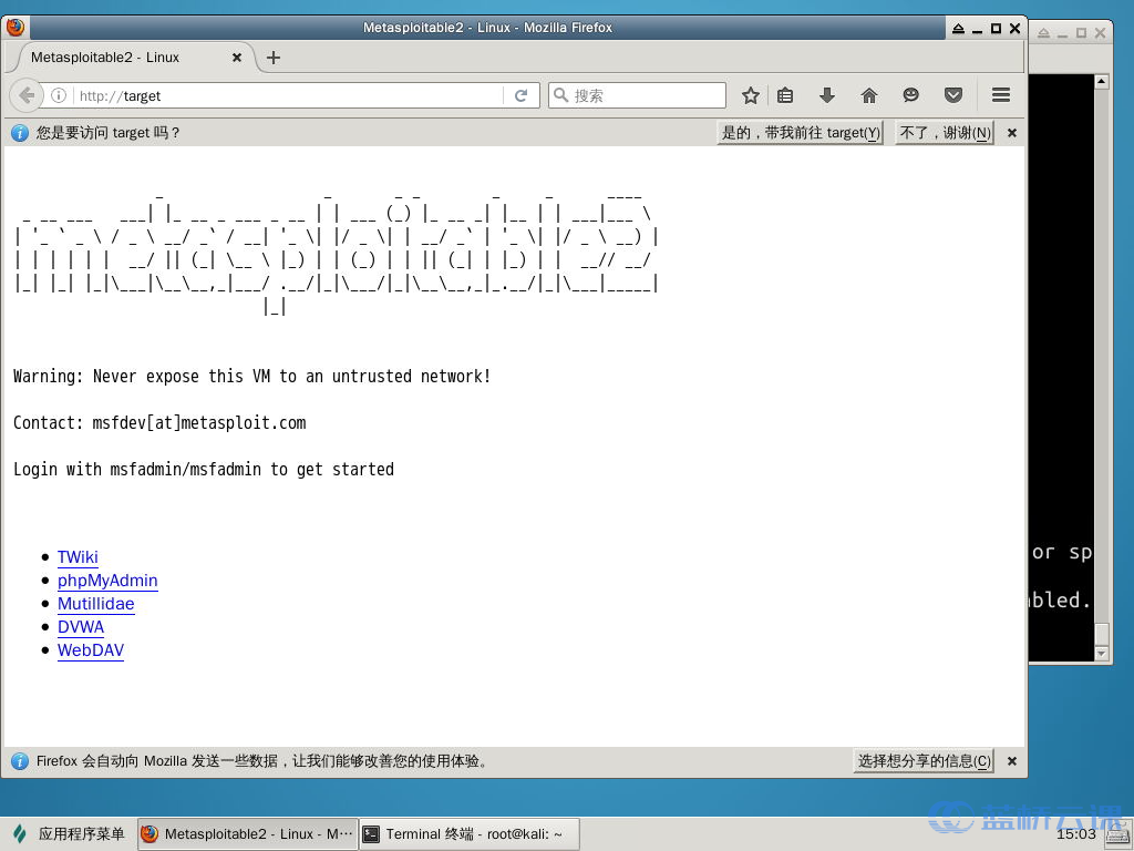 http://targetin the address bar. Test if the target machine can be accessed. If successful, you will see the following:4.1.1 Scanning Specific Ports of the Target Host with amap
