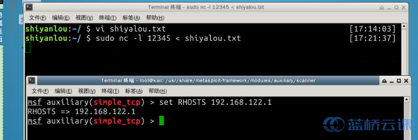 specifies that when the scanner detects this port, the contents of shiyanlou.txt