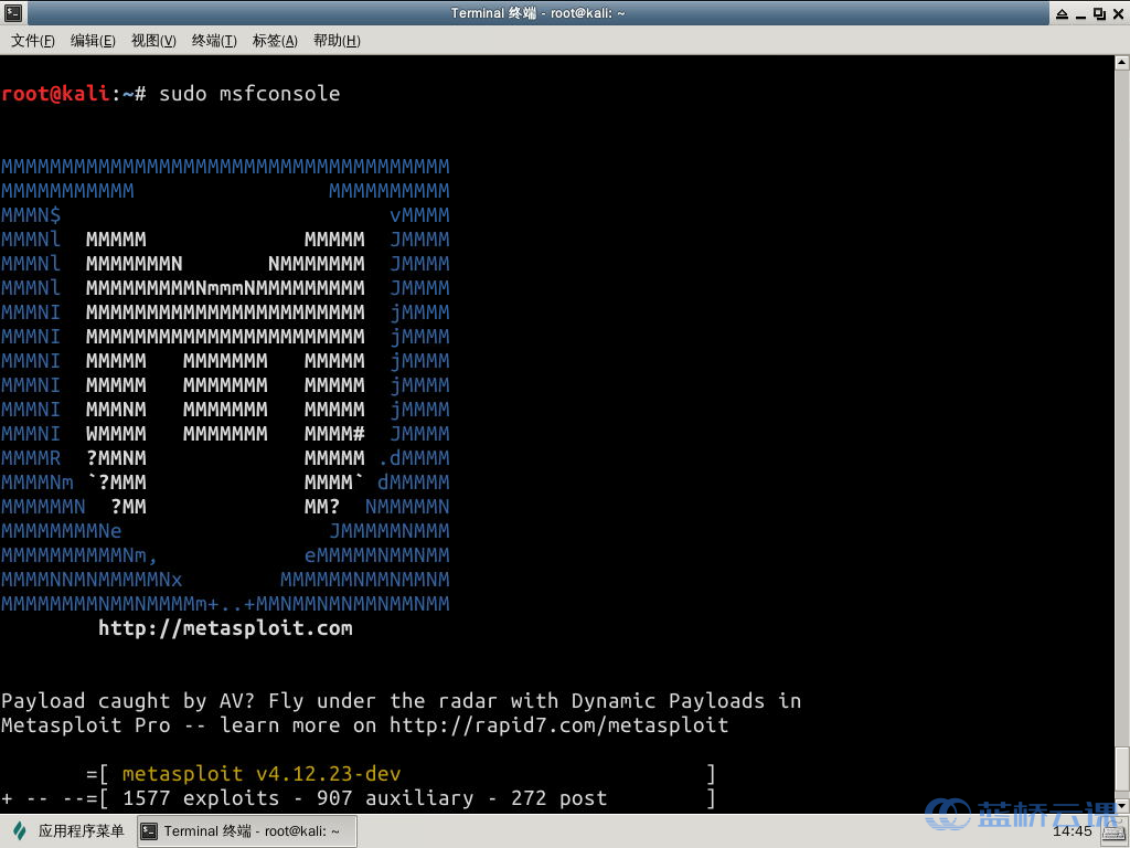 Next, open the terminal again and use the following command to launch the Metasploit console: