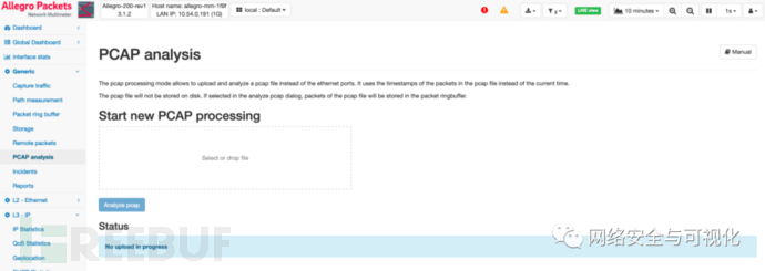 The second functionality provided by the Allegro Network Multimeter to accelerate the use of Wireshark is the pcap upload.