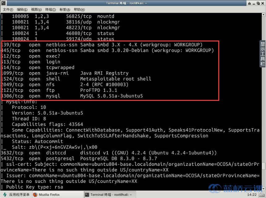 At this point, we’ve successfully used a powerful scanning tool to analyze the open services on the target machine Metasploitable2. Next, we’ll proceed to exploit analysis.