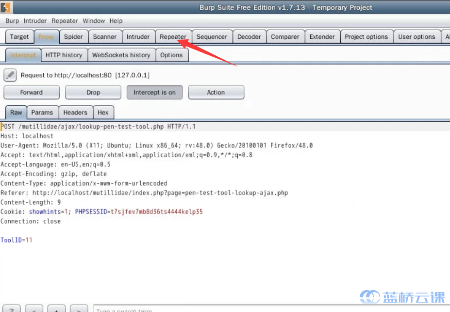 Once again, we click on Lookup Tool, right-click the intercepted message in Burp Suite, and select send to Repeater:
