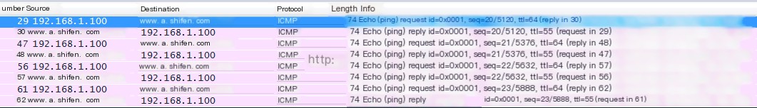 Ping www.baidu.com from the local host and capture data using Wireshark.
